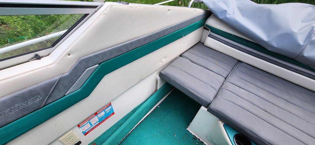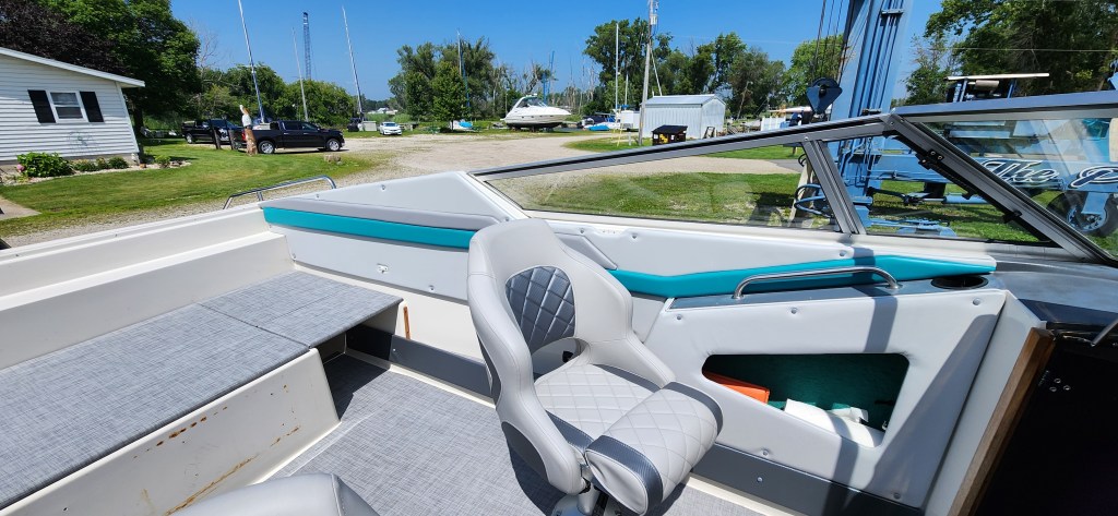 Our latest adventure is making cushions for Nauti Pickle, our Cruisers Yacht Rouge. This is the same boat I lovingly (and maybe a little aggressively) gutted down to the fiberglass the first time I saw it. We bought new captain seats, rebuilt and recovered the sideboards and engine covers, replaced carpeting… basically everything except the hull and cuddy cabin (which will be next). And because I can’t leave well enough alone, I decided the cushions needed to match the fancy diamond stitching on the new seats. So, Chris and I have spent the last few weekends quilting vinyl.