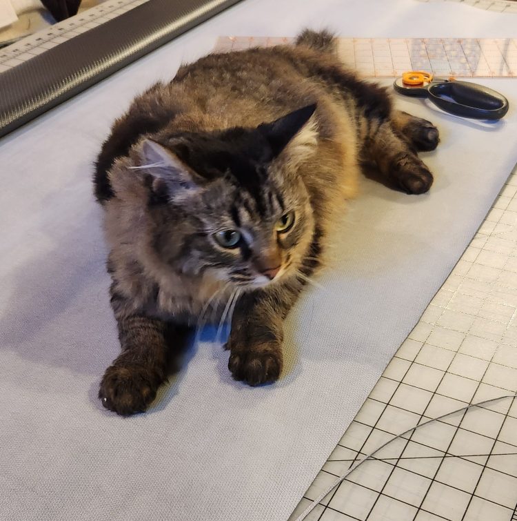 Today I finally sewed a sample together. While I was in the basement working, Gabby—our resident craft supervisor—figured out how to open the door and joined me. She takes her role very seriously. If there’s a project happening, she’s there to “help,” which usually means sitting directly on whatever I need. While Gabby supervised me, Chris was upstairs trying a new pizza dough recipe from King Arthur Baking. Can’t wait to try it tonight.