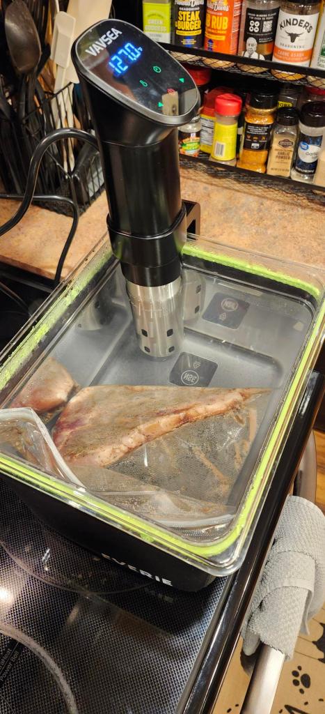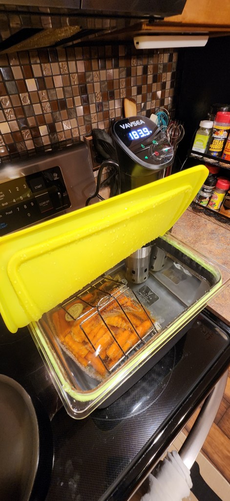 I received a sous vide as a gift from my youngest child for Christmas. Now, I’ve heard other people talk about cooking using the sous vide method and how much they enjoyed it, but I was always somewhat skeptical about it. Boy was I wrong. I think we cooked the first 10 out of 12 meals using it. We cooked everything from pork loins to corned beef, rib eyes and T-bones, chicken wings and thighs, shrimp, and even carrots. All I have to say is WOW! If I had my way, every steak I have from here on out will be prepared in the sous vide and then grilled or broiled quickly (one and a half minutes a side) for a nice, charred exterior. If you’re ever on the fence about getting one or trying it, I would recommend you do so. The internet is full of great recipes. Remember, the only limit is your imagination.